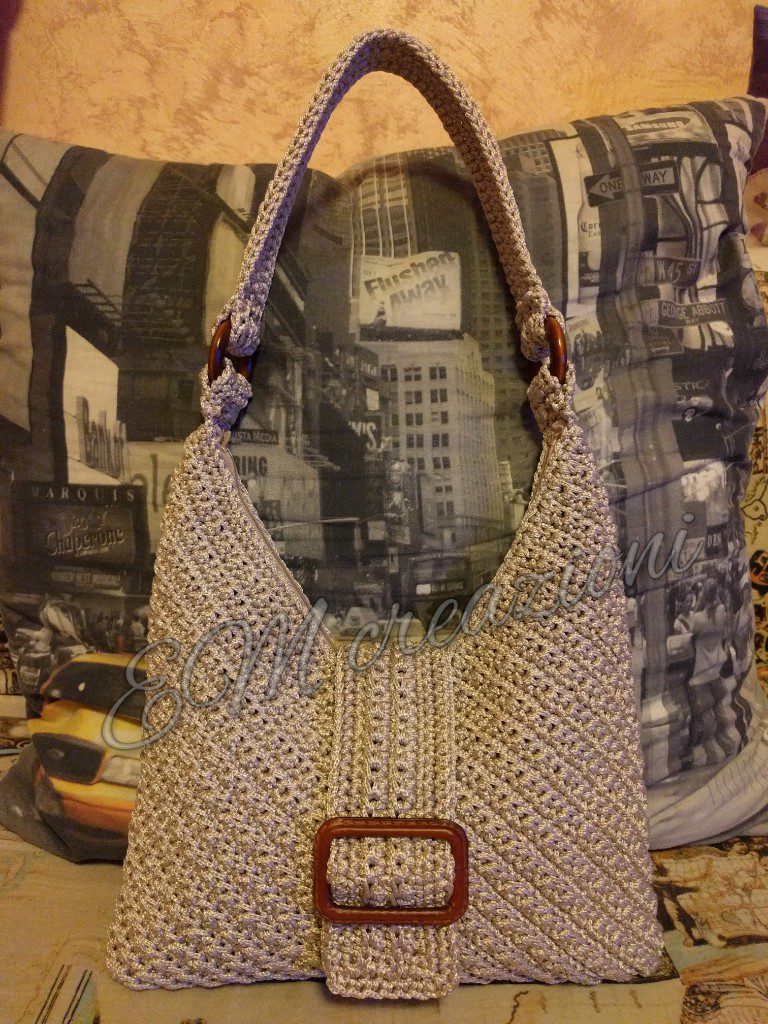 Borsa a spalla realizzata a mano in cordino thai panna con chiusura a clip magnetica e zip.