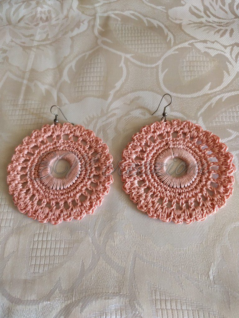 Orecchini in cotone realizzati a mano in tecnica chiacchierino, color salmone variegato.